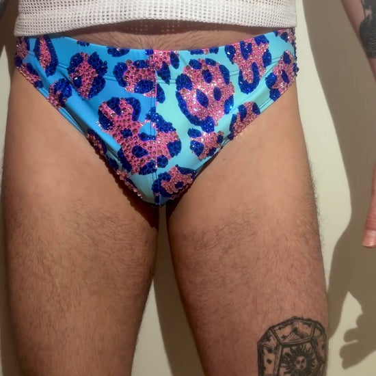Blue/Pink Leopard Swim Brief